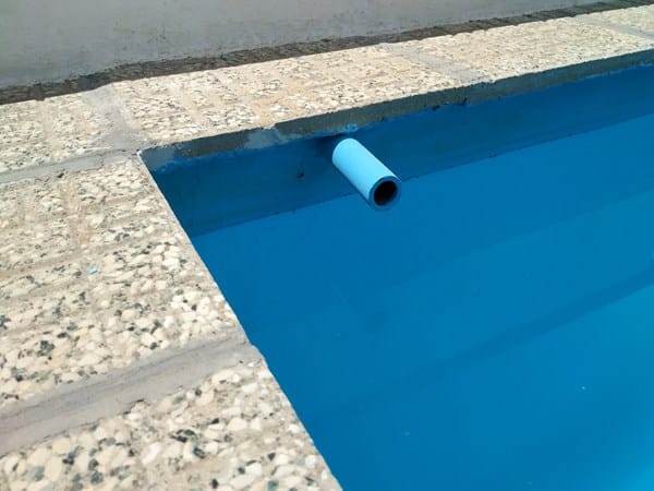 A finales de mayo, la vaciamos y la cepillamos entera con agua fuerte (unos 25 litros gaste). Esperamos 15 días para pintarla (con pintura al agua buena (lo digo por el precio)) y otros quince mas para llenarla.