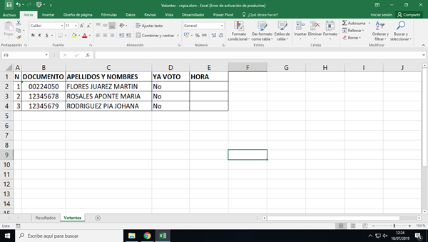 Una vez que realiza esa votación en la hoja "Votantes", en la columna D el "No" se tiene que cambiar por el "Si" y que registre la hora que lo hizo.