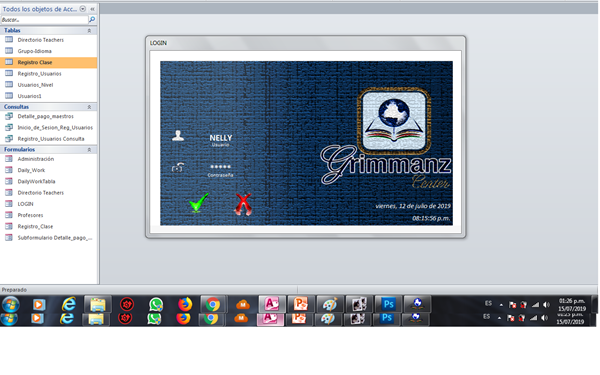 En access quiero hacer que se pueda abrir formulario ya con los datos de nombre completo y fecha, a partir del usuario que ingreso por el formulario de login.
