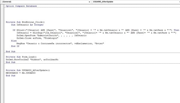 IdUsuario = DLookup("[Id_Usuario]","Usuarios1","Usuario = '" & Me.TxtIdUsuario & "' AND Pass = '" & Me.TxtPass & "'")
