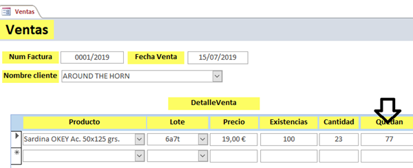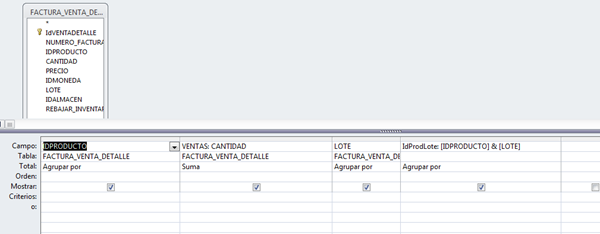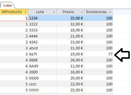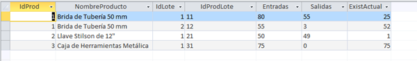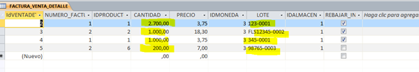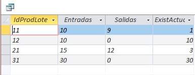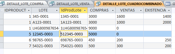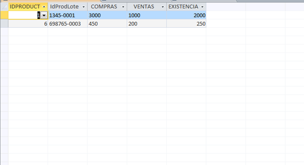El tema está que a pesar de que actualizo la existencia del producto (Compras - Venta), no consigo como manejar los lotes. Es decir, para cada compra de un producto con Lote, pueden existir varias salidas de ese mismo lote en varias facturas. Pero actualizo la existencia y no logro como manejar los lotes, y que se vaya consumiendo y actualizando de con las salidas (ventas). En el formulario de Venta puedo obtener el lote del producto con cuadro combinado, pero no logro rebajar esa cantidad con lote. ¿Qué debo Hacer? ¿Manejar un tabla de lotes cuyo clave principal sea el numero de lote? ¿Manjar solo una tabla con los movimientos? Por favor si alguien puede ayudarme u orientarme, esto es lo único que me está atrasando el proceso de la BD. Los benditos Lotes.