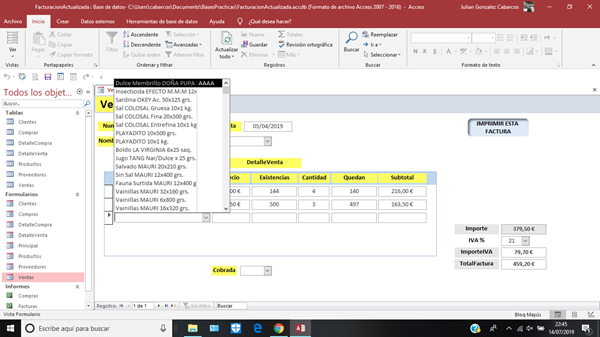 Tengo una BD (sencilla pero completa) en la que ya tengo todas las tablas: Productos, Clientes, venta y detalle Venta, Compras y detalle Compra: