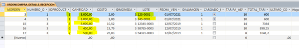 DetalleCompra: iddetalle, idproducto, cantidad, precio, lote, vencimiento, total