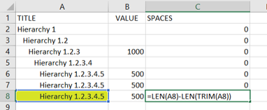 Estoy tratando de calcular la indentación de una columna de Excel ya que generé un reporte y la información se genera de forma jerárquica y requiero organizarla en forma de tabla, es decir más estructurada.