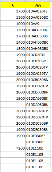 La macro, debe recorrer las celdas de la columna AA y cuando encuentra valores iguales, copiar el valor de la celda correspondiente en la columna C en las celdas vacías.