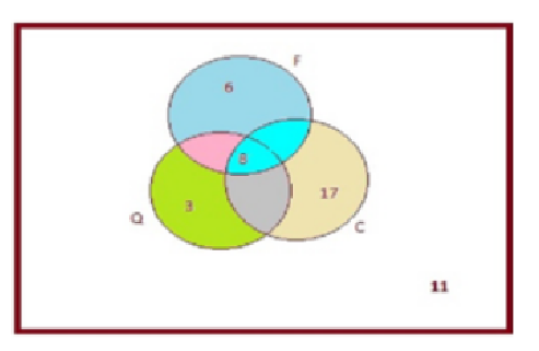 El siguiente diagrama representa los resultados de una encuesta realizada a 45 estudiantes de primer semestre, en el cuál se les preguntó sobre cuál de las asignaturas: cálculo, química o física prefieren. Se encontró que 25 preferían cálculo, 14 se inclinaban por física, 11 les gustaba química y 8 las tres asignaturas. Con base en el siguiente gráfico.