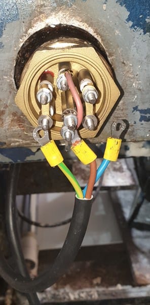 El conector cetac que sale de la máquina tiene cuatro hilos, 2 fases, 1 neutro y toma de tierra.