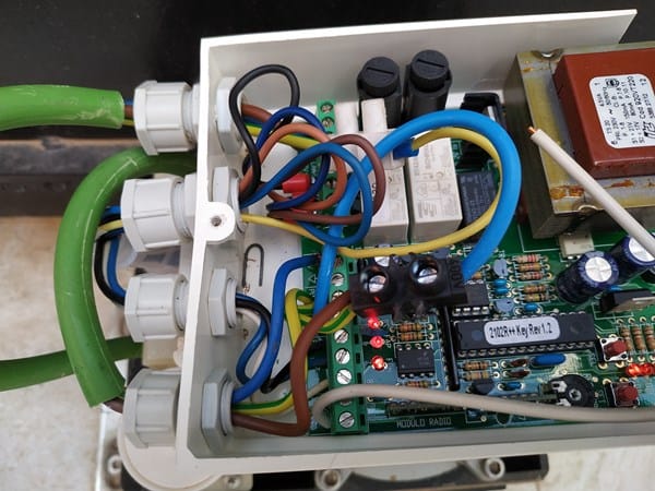 Al abrir el motor vi que el LED del dispositivo de seguridad (DS) no estaba encendido. ENtonces pensé que era porque habría algún cable que se había aflojado. Lo repasé todo y la conexión parecía estar ya correcta y funció las veces que lo probé. Pero al día siguinete volvió a fallar porque al motor no llega la señal del DS (el LED DS del motor estaba apagado).