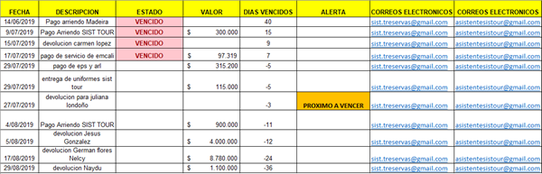 Tengo un archivo en excel donde se tiene la información de ciertos pagos que hay pendientes con fechas me gustaría aparte de mostrar la alerta que se envíe una notificación con cada pago al correo electrónico se que se realiza por macros pero la verdad no tengo conocimiento alguno gracias