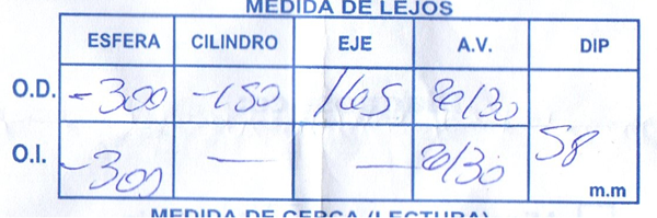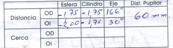 Tengo una serie de dudas con respecto a mis nuevas gafas, antes de comprar las nuevas gafas usaba otras gafas, con las que andaba bien, llevo usando esas gafas desde enero del año pasado, la medida de mis antiguas gafas están en la primera imagen, como pueden observar presento miopía en ambos ojos. Mis problemas empezaron hoy, fui a controlarme la vista, y me dijeron que me aumento un poco mas decidí comprar unas gafas con la nueva graduación, hoy recogí los lentes, me los puse y en el ojo izquierdo siento molestia, es como si algo tapara ese ojo, ademas de que mi visión sigue siendo algo distorsionada porque con ese ojo no logro ver bien, con el derecho no hay problema, tampoco siento los típicos problemas de desnivel de piso ni nada, solo el problema del ojo izquierdo, que siento que no logro ver bien porque no enfoca bien, la medida de los lentes nuevos están abajo y logro ver que en el ojo izquierdo no pusieron nada en cilindro y eje, ¿esto puede ser posible? ¿Esto influye negativamente? ¿Me midieron bien la vista? ¿Voy a la óptica para que lo solucionen? O espero a que pase, cosa que dudo, porque mi ojo izquierdo seguirá sin tener la ayuda que debería al momento de usar los lentes, que hago :(,