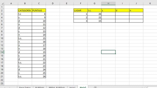 ¿Qué función debo utilizar para que me busque el puntaje del primero y el segundo y el tercer puesto en excel?