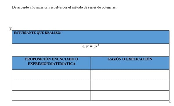 $$\begin{align}&y'=3x^2\\&\\&\text{Asumimos la solucion de la forma}\\&y=\sum_{n=0}^\infty a_nx^n\\&y'=\sum_{n=1}^\infty na_nx^{n-1}\\&\text{La serie empieza en n=1 porque al derivar el a_0x^0 es una constante}\\&\\&y'-3x^2=0\\&\sum_{n=1}^\infty na_nx^{n-1}-3x^2=0\\&\text{Desarrollando la serie hasta el x^2}\\&a_1+2a_2x+3a_3x^2-3x^2+\sum_{n=4}^\infty n a_n x^{n-1}=0\\&\text{Para que esto sea 0 para todo valor de x}\\&a_1=0\\&2a_2=0\\&3a_3-3=0\\&\sum_{n=4}^\infty n a_n x^{n-1}=0 \iff na_n=0\\&\\&\text{De las primeras 2 sabemos que los terminos son 0 y que los na_n}\\&\text{para n mayores a 4 deben ser 0. Nos queda entonces}\\&3a_3-3=0\\&a_3=1\\&\\&\text{Entonces recordando la serie original}\\&y=\sum_{n=0}^\infty a_nx^n\\&\text{Sabemos que a_1, a_2, y a_n para n>=4 son 0}\\&y=a_0+a_3x^3\\&y=a_0+x^3 \\& \because a_3=1\\&\\&\\&\end{align}$$