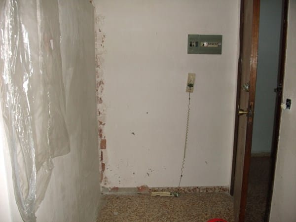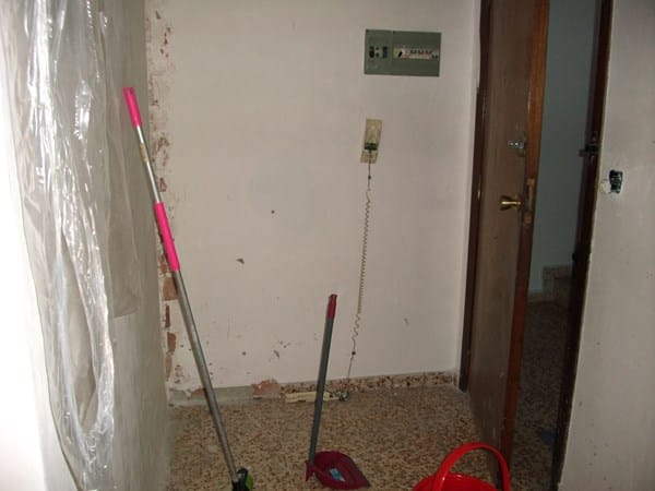 La manguera blanca es la que va desde el portero que va aqui que es el de la puerta de entrada hasta la cocina por lo que yo lo que hice es lo siguiente que lo ves en la foto de abajo puse una caja de mecanismo para tener acceso a el cableado como me dijo JS BP y realice lo siguiente como los cables estan muy cortos pues para prolongarlos lo hice medieante regletas concretamente cinco a cada cable puse una y del extremo de la regleta salia un cable que luego iria al portero y otro de la manguera blanca para llevar funcionamiento al de la cocina es decir que de las cinco regletas salian dos cobles uno que iba al portero de la puerta de entrada y otro al portero de la cocina.