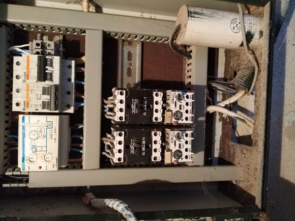 Viendo la foto y diciendo que los elementos del pozo o el cuadrado que hay a la izquierda con la franja azul el interruptor que hay subido a la derecha y la caja negra que hay de las dos la de la derecha, me podéis ir decir cuando yo pongo el interruptor de la puerta del cuadro es manual qué es lo que funciona y qué peligros tiene la bomba, y cuando pongo el interruptor de la puerta de cuadro en automático qué diferencia hay y qué alimentos funcionan en cada uno.