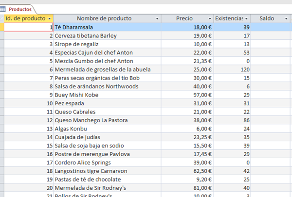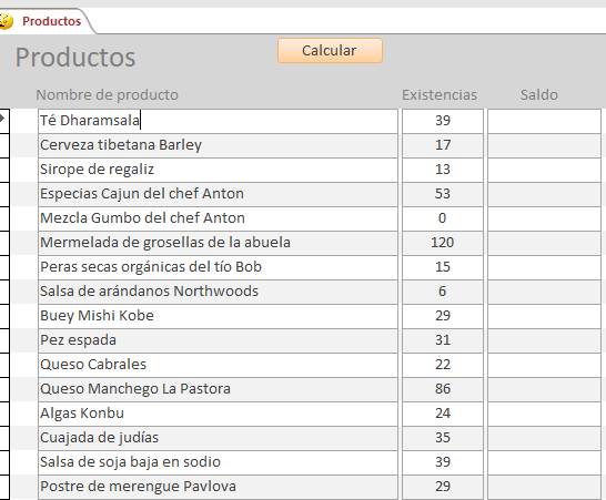 Comprueba que en el campo Saldo de cada registro pone la suma de Existencias de ese registro y de los 5 siguientes.