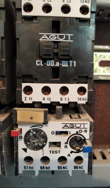 Este segundo se supone que es un contactor, me podéis indicar para qué sirve y luego también las dos ruletas que tiene abajo tanto la que está en rojo como la que está en azul en qué valores están puestos y para qué sirve