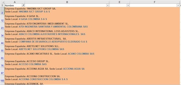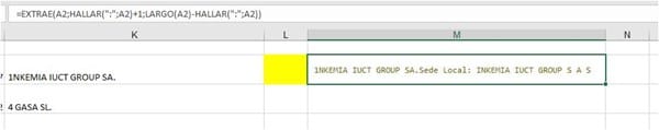 Tengo una hoja de excel de la cual quiero extraer el nombre de unas empresas que se encuentran como texto en una hoja de excel, el problema es que el texto que quiero extraer está en medio de toda la cadena de caracteres y la cadena de los caracteres es diferente en cada celda