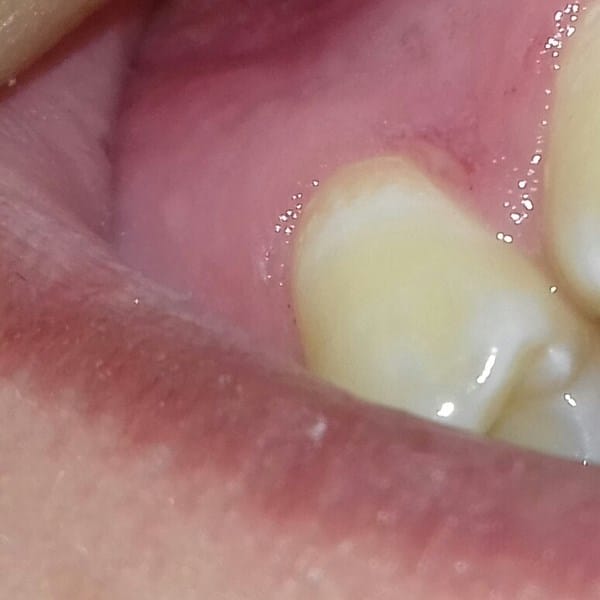 Hace días me encontré con la Situación de Dolor de Encía, No le Tome Importancia y pensé que simplemente tuve un Cepillado Brusco. Hace 2 Días Atrás me encontré que en mi Encías tenia como un Pequeño Desgarre por Así decirlo y me percate que el Dolor es originario de ahí. Pienso tomar medidas que seria ir a con un Consultorio pero mientras quisiera saber si es algo grave y como hacer que no pase a mayor problema. Anexo una Foto