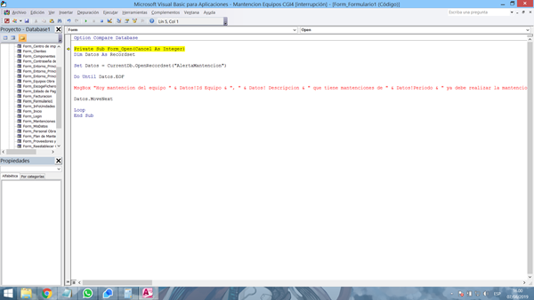 Ademas una ultima pregunta quiero que en un msgbox cuando se llegue a la fecha indicada(5 de octubre 2019) me muestre la información como alerta de esta mantencion mostrando los siguientes campos que también estarán en esta tabla :