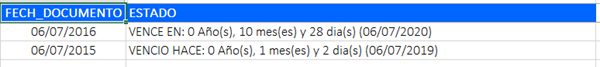 De la misma forma los dos campos mencionados, pero que la macros me muestre un mensaje en el campo 2 que ya venció el documento, algo así (Venció el 01/01/2019 - Archivar).