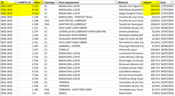 El problema que tengo es que un mismo ID de pedido esta en varias lienas. Los datos que se repiten son todos menos el campo material (el campo importe también se repite siempre). Ej el pedido 0004-2019 tiene un valor 101,32€ en su totalidad. El problema es que hay 4 lienas iguales donde solo cambia el producto.