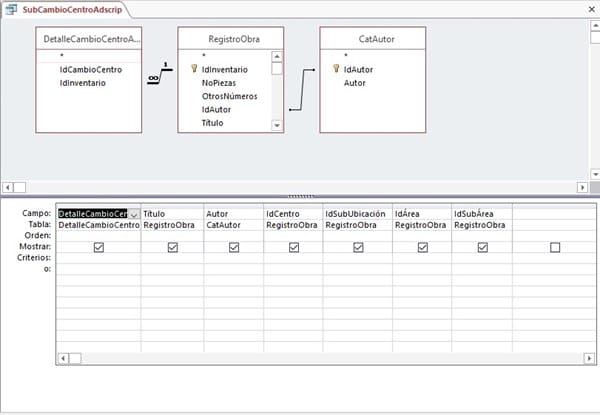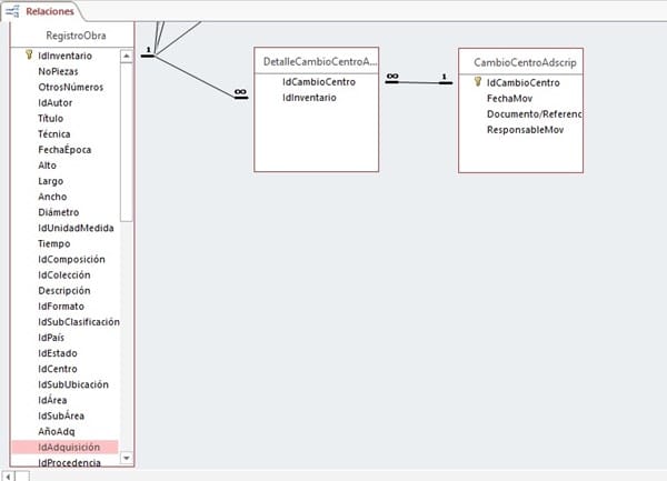 He creado una tabla que se llama [Cambio de Centro de Adscripción] (bueno lo pongo de esa manera para que se entienda mejor, según yo) He puesto los campos de fecha de movimiento, responsable del movimiento y un número de referencia que me remite a un documento que firman los que reciben los bienes representados en dicho movimiento.