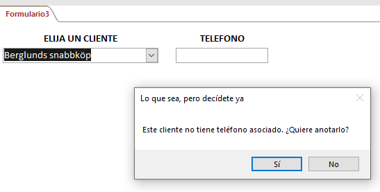 Lo que quiero es que en un cuadro independiente llamado numero de contacto aparezca el número de teléfono del cliente que seleccione y si el cliente no tiene teléfono entonces me aparezca si quiero seleccionar agregar el teléfono esto con 3l propósito de llenar datos faltantes.