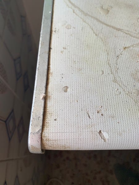 Tengo una encimera de cocina muy estropeada, yo diría que es de madera pero está recubierta por una capa de algún tipo de material sintético similar al plástico muy resistente puesto que lleva décadas instalado pero que no puedo identificar. Este material superficial ahora está muy estropeado y sucio.