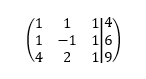 Det = 1*(-1*1 - 2*1) - 1 * (1*1-4*1) + 1 * (1*2-4*(-1)) = -3 + 3 + 6 = 6