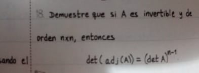 MatemáticasProfesoresCálculo luisa duque miranda el 16 ago. 19 Demuestre que si A es invertible y de orden nxn, entonces En geometría vectorial, demuestre que si A es invertible y de orden nxn entonces Seguir Siguiendo Dejar de seguir