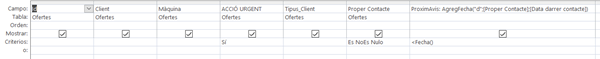 Lo que quiero hacer es muy simple: Cada cliente tiene un número de días en el que se le tendrá que avisar y la última vez que se les avisó. Quiero sumar estos dos valores y comprobar si la fecha es anterior a hoy, y tienen que tener el checkbox de [ACCIÓ URGENT] seleccionado.