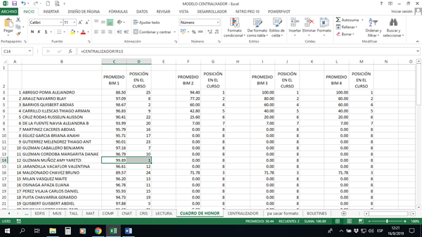 - En general el orden de tu datos es muy malo; quizá para ti visualmente se vea "bien" o "bonito", dicho orden (desorden en realidad) de datos lo único que logra es incrementar la dificultad de tener tus boletines de alumnos correctamente llenos.