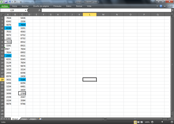 Este es la primer hoja y necesito un código que recorra las columnas intermedias y marque en la segunda hoja las celdas azules cercanas a los números que están bordeados como siempre agradecido