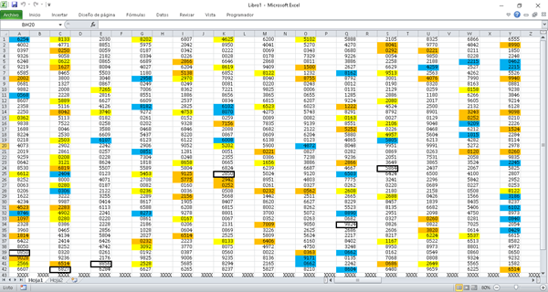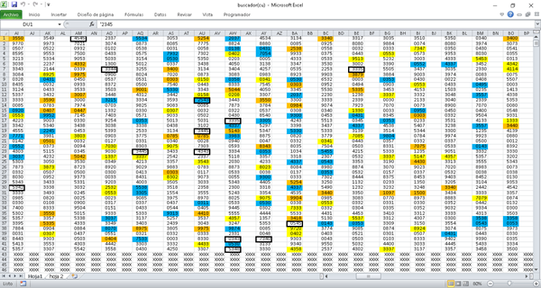 Esas celdas azules serian las marcadas en la hoja 2 aquellas que estan cerca de la celda con borde a una distancia de 2o celdas