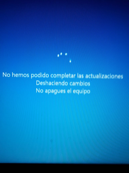 Tengo el siguiente problema en la notebook de mí padre. Cuando se prende o apaga la notebook, después de "intentar actualizar" el windows. Y llegar a un porcentaje del proceso, que varia entre el 94 al 98 por ciento. Muestra el siguiente... ¿aviso?: