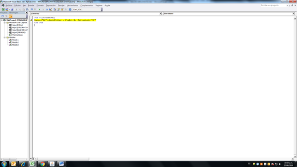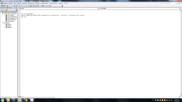 Insertas un módulo. Busca dentro del editor vba en la esquina superior izquierda. No es igual a este porque aún tengo una versión antigua.