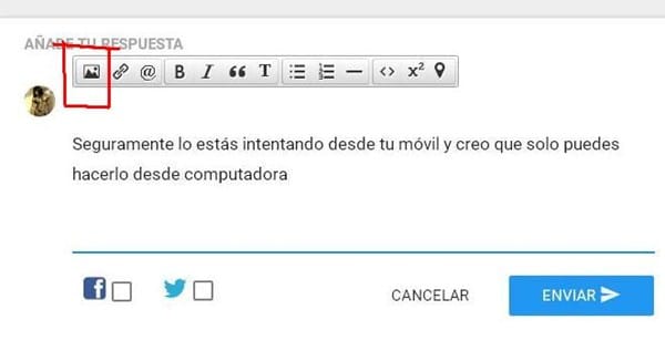 Cómo puedo subir una foto en mi pregunta. No lo veo por ningún lado.