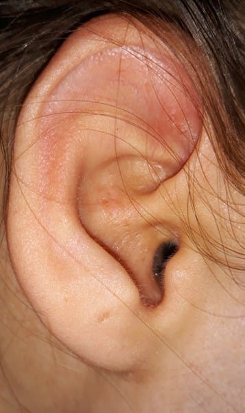 Tengo la oreja un poco inflamada, roja y tiene una pequeña herida justo debajo del pliegue.