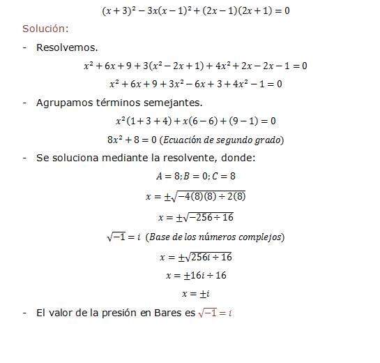 Al resolver la siguiente ecuación y determinar el valor de x, el estudiante determina el valor de presión en Bar con la cual operará el sistema: