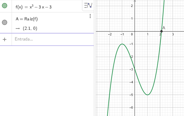 Te dejo una imagen donde se ve que la expresión tiene una sola raíz real (y lamentablemente no es racional)