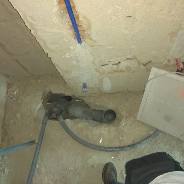 Los dos tubo de desague finos van el de la izquierda a la ducha, y el del centro al lavabo.