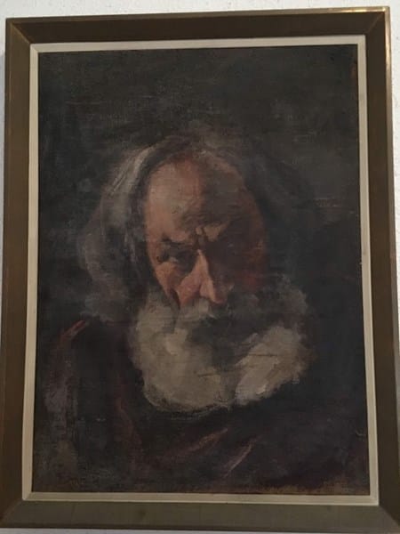Es un cuadro de mi familia bastante antiguo por lo que se aprecia en el lienzo de tela gruesa como de saco.