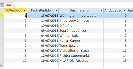 Asignar nº de orden a una tabla con la resta de dos fechas, fecha de alta y fecha hoy.
