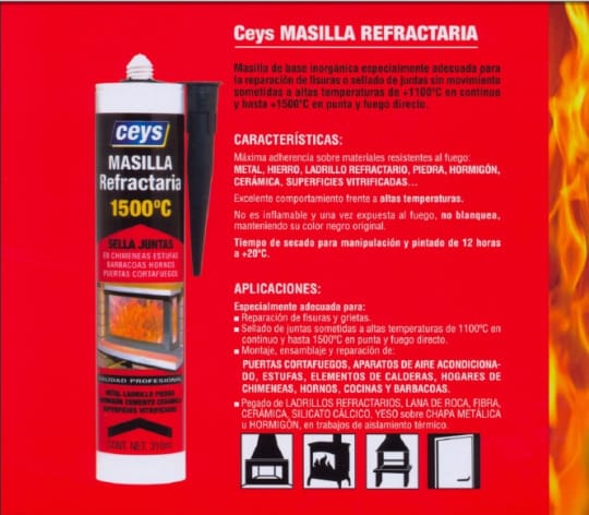 Masilla Refractaria 1500º C Cartucho: Masillas y emplastes.