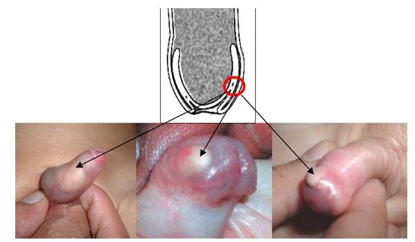 He visto un cuadro similar, se trata de un quistye sebáceo de glande, pero no consiste del todo en la misma alteración, aquí puede verlo