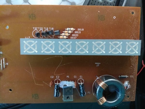 No veo ningún componente mal soldado ni en mal estado (condensador hinchado, transistor quemado, es lo que puedo ver a simple vista), esto es lo más que puedo comprobar, por eso realizo esta consulta a los expertos.