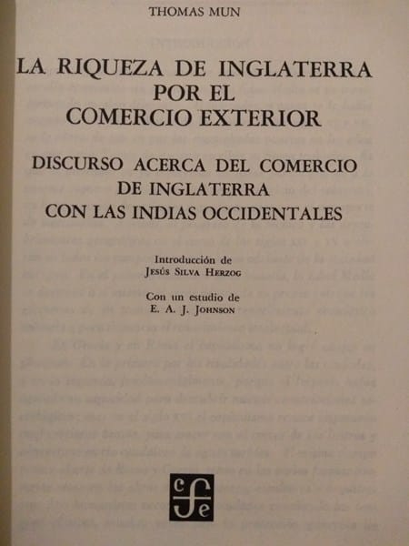 La riqueza deInglaterra por elcomercio exterior / Thomas Mun ; introd. De Jesús Silva Herzog ; con un estudio de E. A. J. Johnson ; tr. deJosé Vasconcelos
