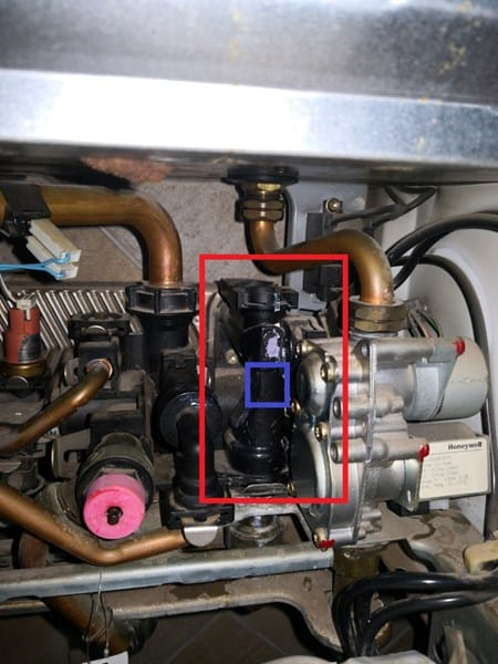 Tengo una caldera saunier ducal F24E. No hace ni dos meses que le cambié la placa electrónica y estaba funcionando todo bien. Bueno, pues desde hace una semana viene goteando por la parte baja y, cual es mi sorpresa, cuando al quitar la tapa y abatir la placa veo un chorrito de agua que sale por un microporo de una pieza plástica. El poro no se ve, solo se ve el chorrillo. Esa pieza parece formar parte de un todo, no veo que sea fácil cambiarla. Habiendo hecho un desembolso tan reciente no quisiera tener que cambiar la caldera.