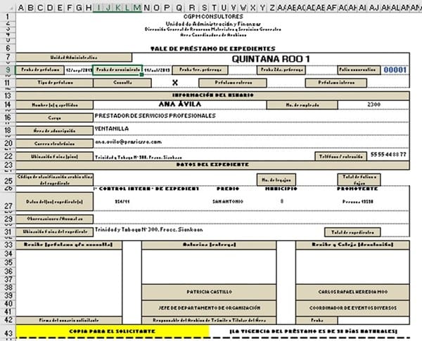 Respaldo de formato de préstamo de expedientes