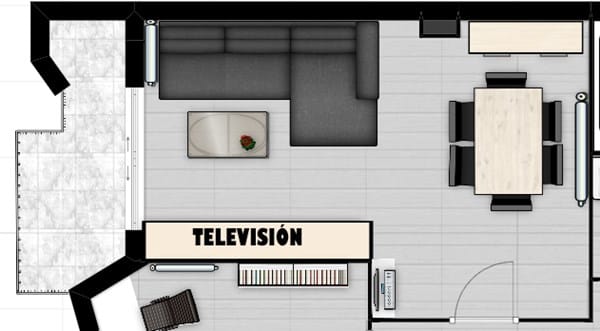 Estoy haciendo algunas reformas en casa y tocará pintar el comedor. Es por ello que quería preguntaros en que color/tono debería pintar la pared donde va colocada la televisión. Según tengo entendido se recomiendan colores oscuros, si es así ¿me podéis aconsejar algún tono? El resto de paredes del comedor las pintaré en un tono blanco para crear un aspecto visual mas amplio del comedor. Os dejo un croquis de como es el comedor, por si influye también el tener el balcón justo al lado en cuanto a la luz, aunque siempre que veo una película o serie bajo persianas.